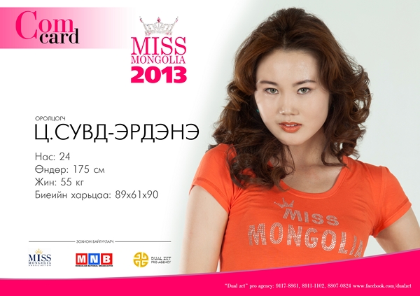 “Miss Mongolia-2013” тэмцээний шилдэг оролцогч Ц.Сувд-Эрдэнэ