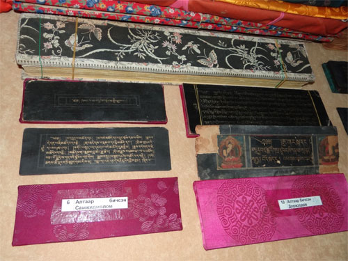 Үүнээс 10 ширхэг нь түүх соёлын үнэт зэрэглэлд хамаарах алтаар бичсэн Доржжодба, Цэнд, Жүгдэрнамжил, Санжодмонлам, Хорин нэгэн Дара эх зэрэг судар байгаагаас Доржжодба нь зурмал бурхантай алтаар бичжээ.