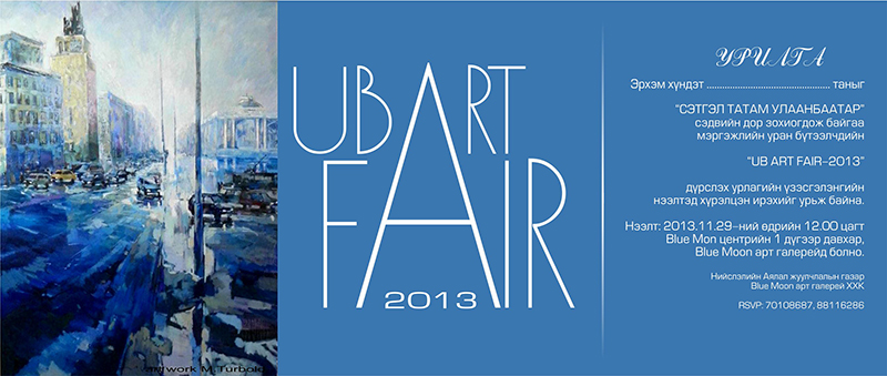 Уран бүтээлчдийн хүсэн хүлээдэг “UB Art Fair” үзэсгэлэн тав дахь жилдээ зохион байгуулж буй бөгөөд цаашид тус үзэсгэлэнг дэлхийд алдартай Швейцарийн “Art Basel”, Лондонгийн ”Frieze”, Недерландын “TEFAF” зэрэг уран зураг цуглуулагчид, сонирхогчид зорин ирдэг дүрслэх урлагийн томоохон арга хэмжээ, нийслэлээр овоглосон соёлын аялал жуулчлалын эвент болгохоор зорьж байна.
