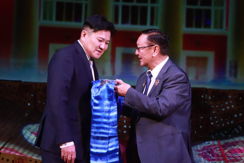 Гавьяаныхаа амралтад гарч, хашсан албаа нэр төртэйгөөр хүлээлгэн өгч буй Д.Цэрэнсамбууг УДЭТ-ын хамт олон нь өнөөдөр театрынхаа тайзнаа ёслол төгөлдөр хүлээн авч, энэ үеэр УДЭТ-ын шинэ захиралд театрын тамга тэмдгийг гардуулан өгөх ёслол үйлдэв. Түүнчлэн УДЭТ-ын ахмад уран бүтээлчид болон өдгөө ажиллаж буй хамт олон нь, мөн Монгол улсад үйл ажиллагаа явуулж буй мэргэжлийн урлагийн байгууллагуудын удирдлагуудын төлөөлөл түүнд хүндэтгэл үзүүллээ.