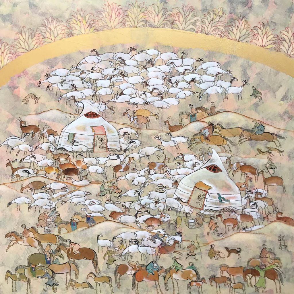 Энэ удаагийн үзэсгэлэндээ метал, торго, зотон, модон дээр урлан бүтээсэн “Шинэ өглөө”,“Жаргалтай наран”, “Талын өглөө”,“Монгол наадам”, “Ертөнцийн анир”,“Тэнгэрийн заяа”,“Миний нар”,“Өндөр ээж”,“Эртний сайхан”,“Заяаны хэлхээ”,“Сэрүүн сайхан”, “Эмээ”,“Дуулал”, “Миний аав, ээж, би”, “Шинэ өглөө”, “Хүү”,“Нүүдэлчин” зэрэг шинэ бүтээлүүдээр үзэгч олонд өргөн барьж байна.