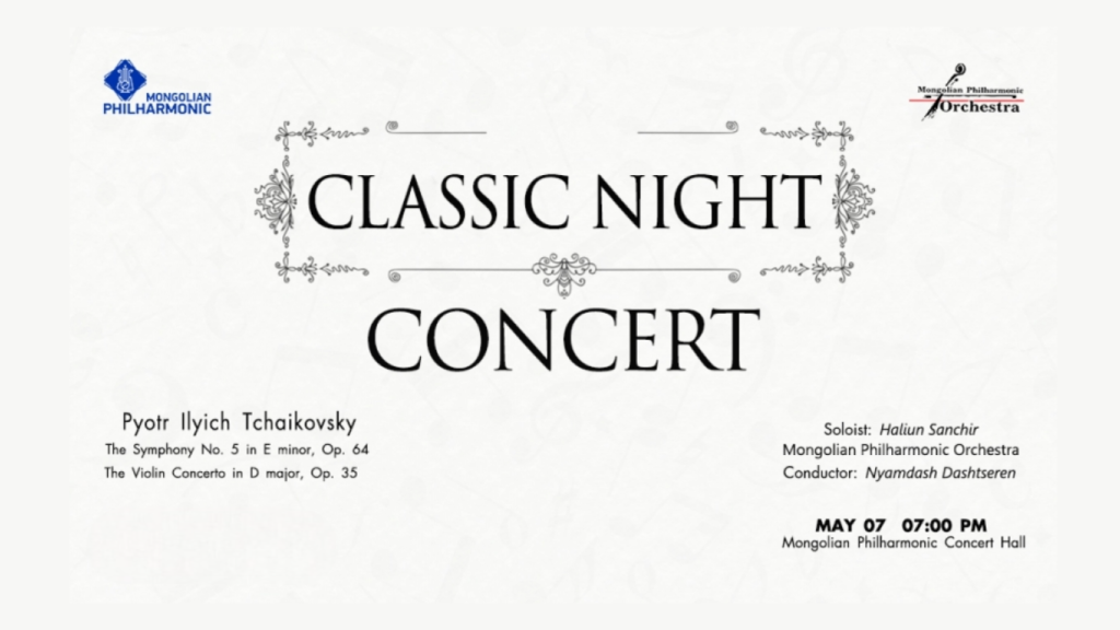 Улсын филармонийн симфони оркестрын ээлжит “Сонгодог үдэш” концерт 2025 оны тавдугаар сарын 7-нд болно. Хөгжмийн зохиолч П.И.Чайковскийгийн мэндэлсний 185 жилийн ойг тохиолдуулан түүний тавдугаар симфони болон хийлийн концертоор хөтөлбөрөө бүрдүүлжээ.