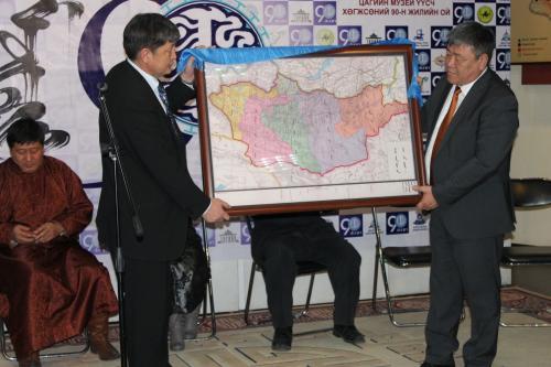 .Мөн нээлтийн үйл ажиллагааны үеэр Монголын Үндэсний музейн захирал Д.Сүхбаатар 1926 онд бүтээгдсэн Монголын түүхэн газрын зургийн хуулбарыг ССАЖЯаманд гардуулан өгсөн юм. Эртний Грек, Ромоос гаралтай музей нь МЭӨ 400 он буюу одоогоос 2,5 мянган жилийн өмнө үүссэн. Харин Монголд орчин цагийн анхны музей 1921-1924 онд тулгын чулуугаа тулж, үзмэр сан хөмрөгөө цуглуулан 1924 онд албан ёсоор олон нийтэд үйлчилж эхэлсэн байдаг юм. Нэрт эрдэмтэн О.Жамъян музейн анхны даргаар ажиллаж байжээ.