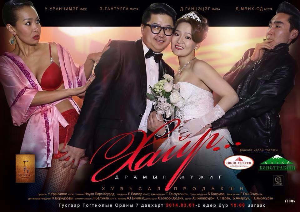 Америкийн зохиолч Nouel Kourd-ын “Хайр” зохиолоор бүтээсэн тус жүжгийг УДЭТ-ын найруулагч Б.Баатар найруулан гол дүрүүдэд Гавьяат жүжигчин У.Уранчимэг, соёлын тэргүүний ажилтан Д.Ганцэцэг, Ц.Мөнх-Од, Э.Гантулга нар тогложээ.