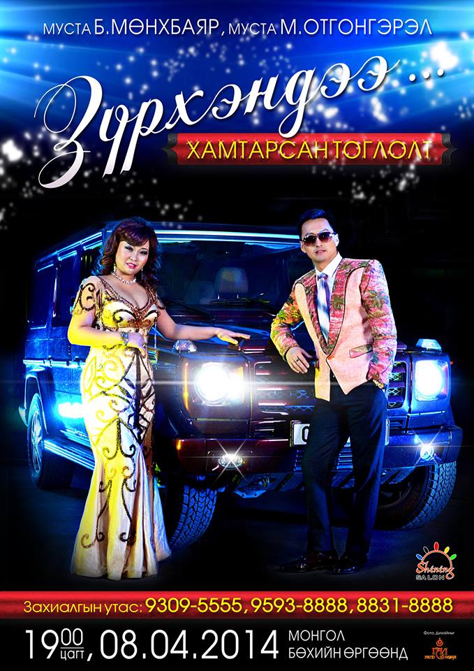 МУСТА Б.Мөнхбаяр, МУСТА М.Отгонгэрэл нарын хамтарсан “Зүрхэндээ” тоглолт 4-н сарын 8-нд 19:00 цагаас Монгол бөхийн өргөөнд болох гэж байна.. Тоглолтод дуучин Эрдэнэдалай, Солонго, цэнгээнт бүжгийн “Улаан Сарнай” хамтлаг Монголын хүүхдийн ордны сурагчид оролцох аж.