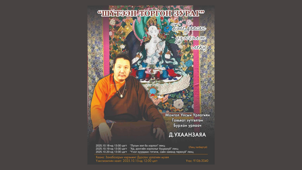Г.Занабазарын нэрэмжит Дүрслэх урлагийн музей нь Монгол Улсын Урлагийн гавьяат зүтгэлтэн, Бурхан урлаач Д.Ухаанзаяагийн үндэсний уламжлалт урлаг, торгон зураг /зээгт наамал/, бурхан зураг, Монгол зургийг дэлгэрүүлэх, сэргээн хөгжүүлэх их үйлсэд зориулан гаргаж буй “Шүтээн торгон зураг” бие даасан үзэсгэлэнг толилуулахад бэлэн боллоо.