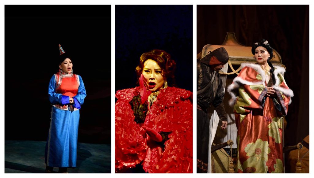 -Би анх театрт ороод “Чингис хаан” дуурийн Хадааны дүрд дуулж байсан юм. Сүүлд 2016 оноос эхлэн Бөртэ хатны дүрд дуулж эхэлсэн. Одоо 11 сард мөн тус дуурь манай театртын тайзнаа дахин эгшиглэх хуваарьтай байгаа. Би мөн л Бөртэ хатны дүрд дуулна. Аливаа юмны эхлэл гэдэг өөрөө их утга учиртай шүү дээ. Үүнээс гадна “Чингис хаан” дуурь гэхлээр нэг тийм сүрдмээр, цаанаасаа л бахархмаар хийгээд үндэстний ялгарал тээсэн мэдрэмж төрдөг л дөө. Би чинь монгол хүн шүү дээ гэж эд эсээрээ мэдэрдэг. Үнэхээр л тэр хөгжим, дуучдад зориулж бичсэн гоё ари, дуэт зэрэг нь биширмээр. Маш гоё тансаг аялгуутай дуурь л даа.