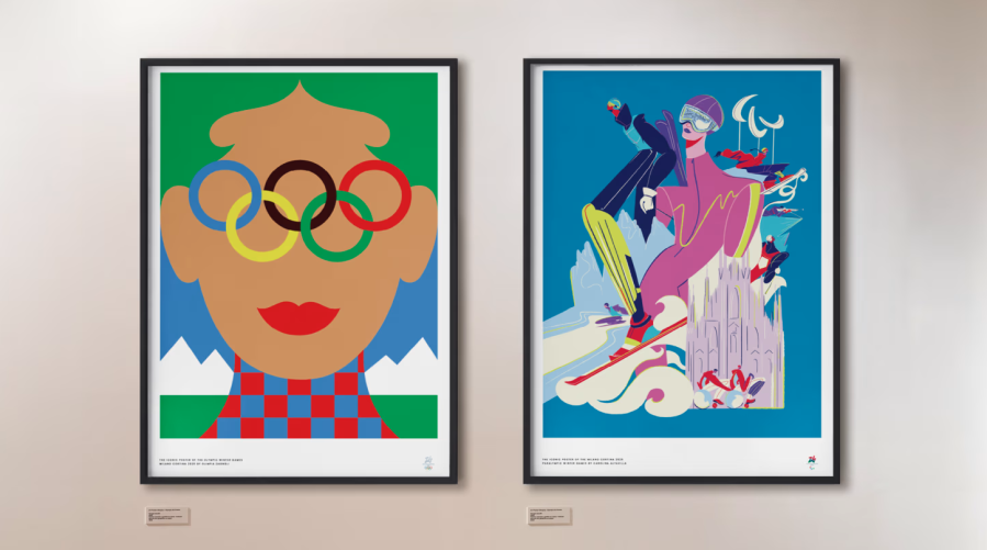 Ирэх оны хоёрдугаар сарын 6-22-ны өдрүүдэд болох Олимпын наадамд зориулан Олимпиа Загнолигийн бүтээсэн тод өнгийн зурагт хуудсанд цасаар хучигдсан уулсын наана Олимпын цагирагаар дүрсэлсэн нүдний шилээр харж буй бүсгүйг харуулсан байна. Олимпиа Загнолигийн хэлснээр, энэхүү зурагт хуудсанд төрөлх Милан хотын хэв маяг хийгээд Кортина хотын уулсыг тусгаж өгчээ.