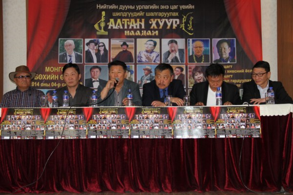Нийтийн дууны урлагийн энэ цаг үеийн шилдгүүдийг тодруулах “Алтан хуур-2014” наадмын хэвлэлийн хурал өнөөдөр болж, зохион байгуулах комиссын гишүүд болон нийтийн дууны урлагийн төлөөллүүд оролцож наадамд нэр дэвшигчдийг албан ёсоор олон нийтэд зарлан танилцуулсан бөгөөд наадмын зохион байгуулалтын талаархи дэлгэрэнгүй мэдээллийг хүргэсэн юм.