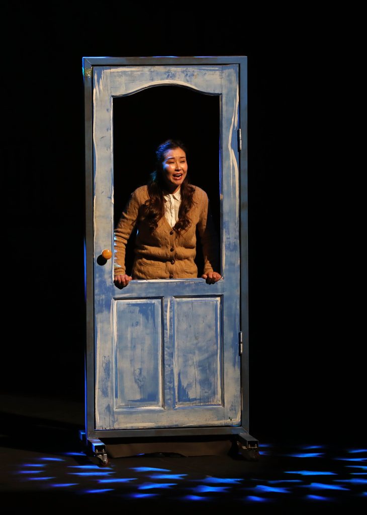 Найруулагчийн шийдэл ч бас тийм бөгөөд жүжигчид эхнээсээ л тайзан дээр хөлхөлдөж угтах юм. Дүр өөрөө зохиол дотроос гэнэтхэн гарч ирээд үзэгчидтэй харилцана, эргээд зохиолдоо ороод явчихна.