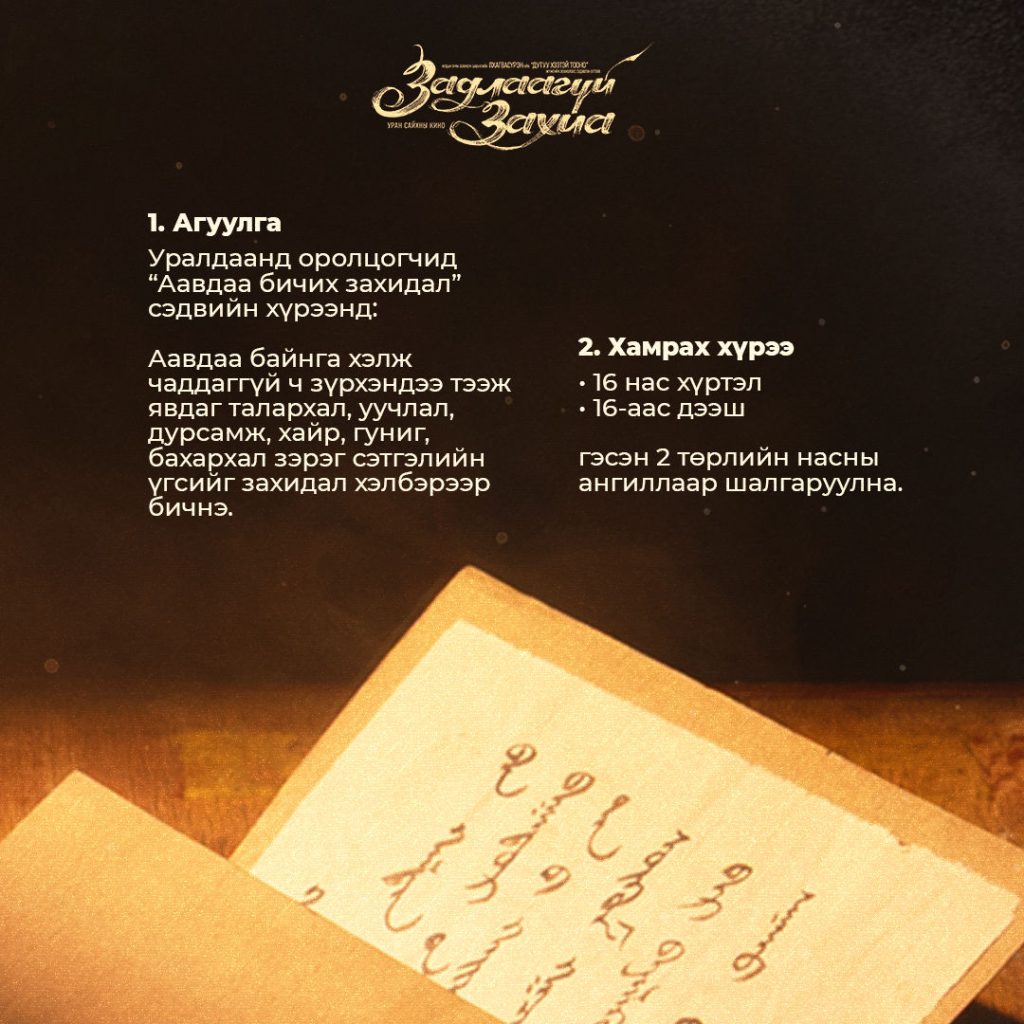 Урлаг.мн»Кино»“Аавдаа бичих захидал” уралдаан зарлаж байна