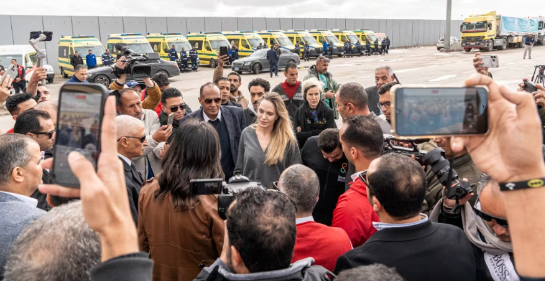 Алдарт жүжигчин Анжелина Жоли өнгөрөгч баасан гараг /2026.01.02/-т хүмүүнлэгийн айлчлалын хүрээнд Египет болон Газыг зурвасын хил Рафа боомтод зочилсон гэж түүний төлөөлөгчид мэдээлэв. Тэрбээр НҮБ-ын Дүрвэгсдийн агентлагийн тусгай элчээр ажиллаж байсан бөгөөд Газад тусламж хүргэх асуудлаар хүмүүнлэгийн байгууллагуудтай уулзжээ. Тэрбээр Израиль улс Газын зурваст ажиллаж буй 35 гаруй тусламжийн байгууллагын үйл ажиллагааг зогсоох болсонтой зэрэгцэн очсон байна. Израилийн зүгээс бүртгэлээ сунгаагүй байгууллагуудыг зогсооно гэж мэдэгдсэн бол тусламжийн байгууллагууд энэ шаардлага ажилтнуудын аюулгүй байдалд эрсдэл учруулж болзошгүй гэж анхааруулж байгаа юм.