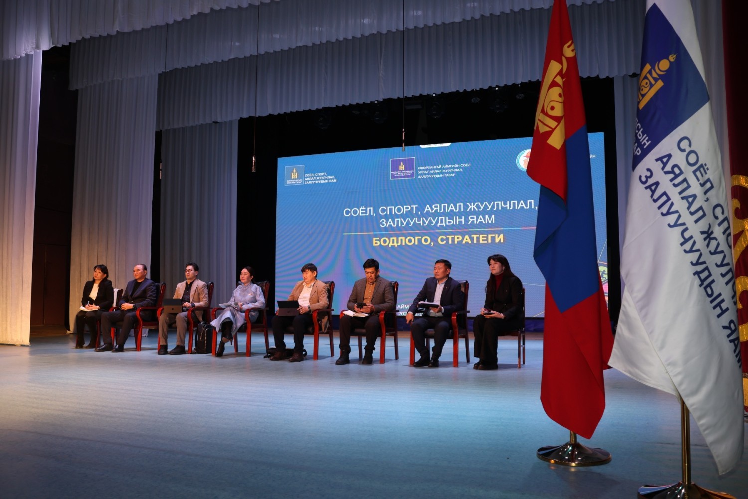 Мөн аймгийн Соёл, урлаг, аялал жуулчлал, залуучуудын газар болон Биеийн тамир, спортын газрын удирдлага, алба хаагчидтай уулзаж, яамны бодлого, стратегийг танилцууллаа. Уулзалтаар салбар байгууллагуудын өнөөгийн нөхцөл байдал, хэтийн зорилго, хэрэгжүүлж буй бодлого, хөтөлбөр, үйлчилгээний хүртээмж, цаашдын хөгжлийн чиг хандлагын талаар санал солилцож, тулгамдаж буй асуудлуудыг тодорхойллоо.