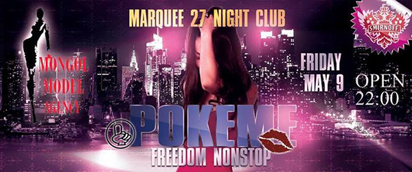 Урин дулаан цаг ирж их хотын залуусын шоуны улирал эхэллээ гэвэл буруудахгүй болов уу. Энэ зуны хамгийн эхний шоу “Marquee 27”-д тавдугаар сарын 9-нд болох гэнэ. “Poke me party”-ны залуусыг шоуны соёлд уриалж байгаагаараа онцлогтой аж. Тус шоуны үеэр хоёр өнгийн бугуйвч тараагдах бөгөөд хэрвээ та ногоон өнгийн бугуйвчийг сонговол тус клубт байгаа бүх ногоон өнгийн бугуйвчтай охид залуустай нээлттэй танилцаж найзын хүрээгээ тэлэн нөхөрсөг байж kiss me & poke me sticker авах боломжтой болох юм байна.