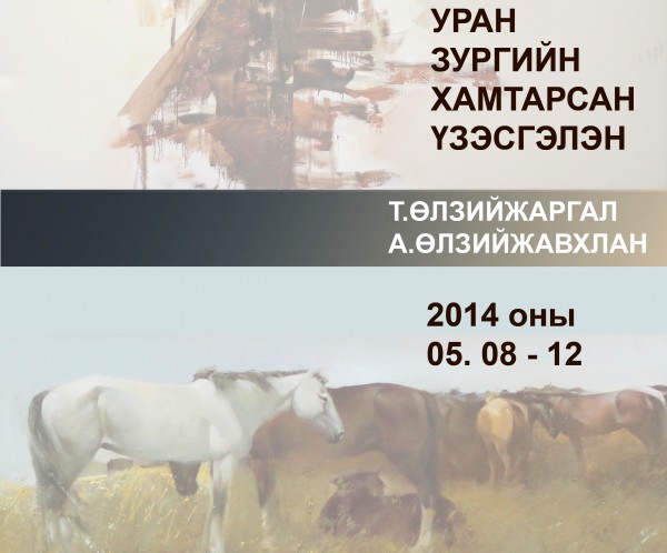 Монголын урчуудын эвлэлийн гишүүн, залуу зураач, гэр бүлийн авьяаслаг уран бүтээлч Т.Өлзийжаргал, А.Өлзийжавхлан нарын хамтарсан уран зургийн үзэсгэлэн 5 сарын 08-12 өдрүүдэд Барилгачдын талбайн баруун талын Арт хаус төвийн 3 давхарын АРТ ГАЛЕРЕЙД гарахаар болжээ.