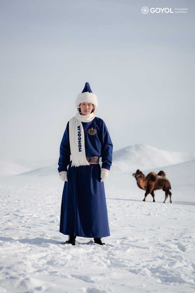 Энэ тухай “Гоёл Кашмер” албан ёсны цахим хуудсандаа “Монгол Улсынхаа үндэстний онцлог, соёлын ялгарлыг хүн төрөлхтний эв нэгдлийн бэлгэ тэмдэг болсон Олимпын наадмын индэрт танилцуулж, дэлхийд гайхуулах эрхэм зорилгынхоо хүрээнд Монголын Үндэсний Олимпын Хорооноос манай компанид өвлийн олимпын наадамд оролцох Монголын баг тамирчдын ёслолын хувцсыг бүтээх хүндэт үүргийг даалган, итгэл хүлээлгэж, бид бахархалтайгаар гүйцэтгэлээ. Уламжлалт дээл хувцсыг орчин үеийн загварт хослуулахаас илүүтэй, аугаа их түүх, өв соёлын маань салшгүй хэсэг болсон эртний монгол хувцасны соёлыг өнөө цагт дахин таниулж, дэлхий дахинд хүргэхийг бид машид зорив. Манай улсын хамгийн хүчирхэг түүхэн үе болох XIII–XV зууны Их Монгол Улсын үеийн дээл хувцсыг үндэс болгон бүтээсэн энэхүү загвар нь хөдөлгөөнд саадгүй хормойн оноо, салхи хүйтнээс хамгаалах мөөрөлжин зах, элэг тэвэрсэн битүү энгэр зэрэг уламжлалт шийдлийг хадгалсан бөгөөд зөөлөн тансаг монгол ноолуурыг гоёмсог торгоор эмжин, уламжлалт эвэр угалз хээг хатган, ёслол хүндэтгэлийн хэв маяг шингээснээрээ онцлогтой. Нүүдэлчин ард түмэн бидний хатуу өвлийг даван туулахад түшиг болж ирсэн Монгол ноолуураар уламжлалт түүх соёлыг хадгалсан ёслолын дээл болон барууны соёлд түгэн дэлгэрсэн уулын цанын ноосон цамцнаас сэдэвлэж, монгол гэр, ахуйн дүрслэлээр баяжуулсан ноолууран сүлжмэл чөлөөт хослолуудыг дээд зэргийн чанараар урлалаа. Хэдэн мянганы туршид төв Азийн өндөрлөгийн мөнх өвлийг туулж ирсэн Монголчууд бидний тэсвэр хатуужил, ур ухаан, дайчин чанарыг дэлхийн спортын тавцанд тодотгон харуулж, бахархалтайгаар тунхаглая” гэжээ.