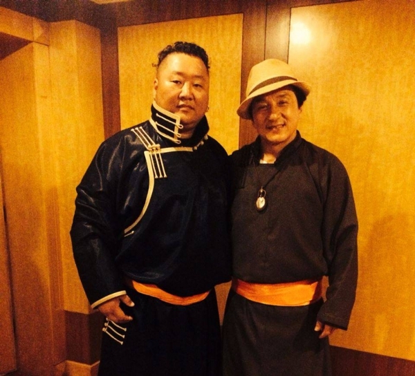 Жүжигчин Jakie Chan-тай бүтээсэн зураг авалтаа дуусгаад М.Баясгалан Монгол түмнийхээ нэрийн өмнөөс үндэснийхээ дээлийг Jakie-д бэлэг болгон барьжээ. Монгол түмний өв соёл бахархал болсон бэлгийг Jakie Chan гардан авахдаа "Би Монгол цустай. Ийм сайхан дээлтэй боллоо" гэлээ.