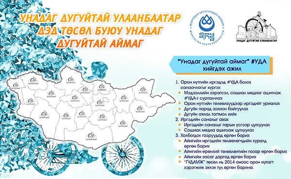 2013 оноос “Унадаг дугуйтай Улаанбаатар” төслийг хэрэгжүүлж, олон ажлыг шат дараалалтай гүйцэтгэсээр байна. Төслийн зорилго нь унадаг дугуй буюу байгаль орчинд ээлтэй ногоон тээврийн хэрэгслийг иргэдийн хэрэглээ болгож Улаанбаатар хотын иргэд, залууст тулгамдаж буй асуудлууд болох чөлөөт цагаа зөв боловсон өнгөрүүлэх, авто замын түгжрэлийг бууруулах, агаарын бохирдлыг багасгах, хөдөлгөөний дутагдлаас үүдэлтэй өвчлөлийг багасгах нийтийн эрүүл мэндийг сайжруулах зорилтуудтай юм.