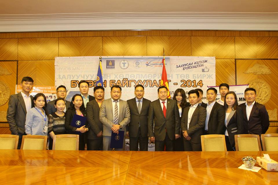 Хөдөлмөрийн яам, Монголын Залуучуудын Холбооны хооронд 2013 оны 6 дугаар сарын 14-ны өдөр байгуулсан хамтран ажиллах Санамж бичгийн хүрээнд 2014 онд залуучуудын хөдөлмөр эрхлэлтийг нэмэгдүүлэх хөтөлбөрийг эхлүүлэх гэрээнд УИХ-ын гишүүн, Хөдөлмөрийн сайд Я.Санжмятав, МЗХ-ны ерөнхийлөгч А.Мөнхбат нар гарын үсэг зурлаа.