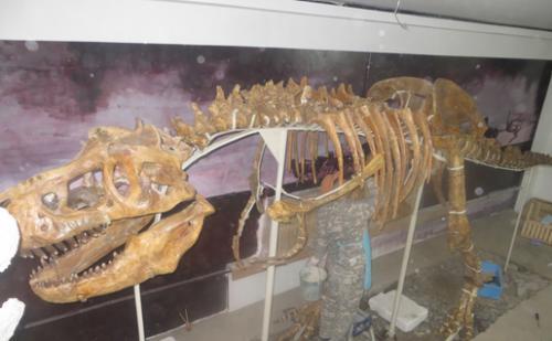 Уг ажлыг ССАЖЯ-ны захиалгаар ШУА-ийн Палеонтологийн төвөөс тарбозаврын олдворыг буулгах, олон дахин давтан бэхжүүлэх, сэргээн засварлах, шинээр дэглэх үүрэг бүхий мэргэжлийн багийг томилон ажиллуулсан байна. Энэхүү олдворыг анх 1986 онд ШУА-ийн Геологийн хүрээлэн (хуучин нэрээр)-ийн палеонтологийн секторын судлаачид олж илрүүлэн, малтлагын ажлыг гүйцэтгэсэн бөгөөд 1987-1988 онд тус хүрээлэнгийн палеонтологийн лабораторид хөрс чулуулгаас нь салган цэвэрлэх техник боловсруулалт болон судалгааны ажил хийгдэж 1989 оны 6 дугаар сарын 1-нээс эхлэн 3 сарын турш музейн үзмэр болгож угсарсан байна.