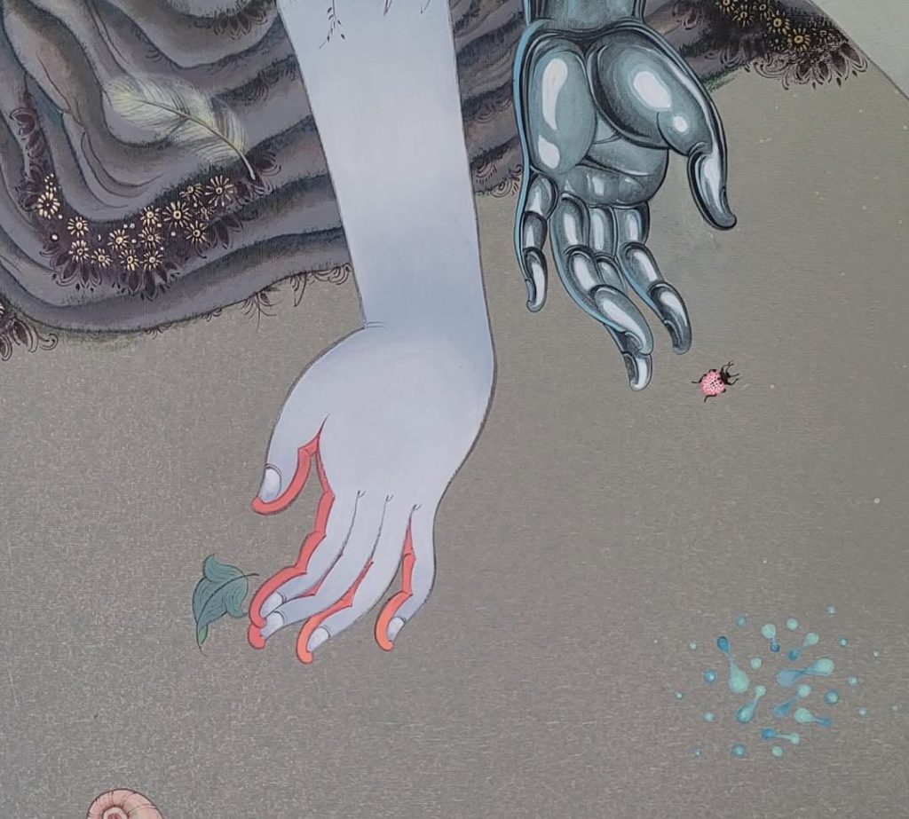 Д.Үүрийнтуяа, Ая Шалкар нар эртний иргэншил, Казахстаны тэнгэр үзэл, Монголын нүүдэлчин ахуй болон Төвөдийн буддын шашин дахь хүчирхэг эмэгтэй дүрийг бүтээлүүддээ тусгажээ. Ая Шалкар соёлын ижилсэл, хүйсийн гүйцэтгэх үүргийг баримал болон археологийн элементээр илэрхийлдэг бол Д.Үүрийнтуяа монгол зураг, буддын шашны иконограф (уламжлалт бурхан шашны зураг дахь дүрслэл, бэлгэдлүүдийг авч, өөрийн сюрреал хэв маягтай хослуулан шинэ утга санааг илэрхийлдэг)-т сюрреал хэв маяг оруулж, нүүдэлчдийн дараах эрин үеийн эхчүүд, цагаач эмэгтэйчүүдийн өдөр тутмын амьдралыг дайчин дүр төрхөөр дүрсэлснээрээ онцлогтой юм байна.