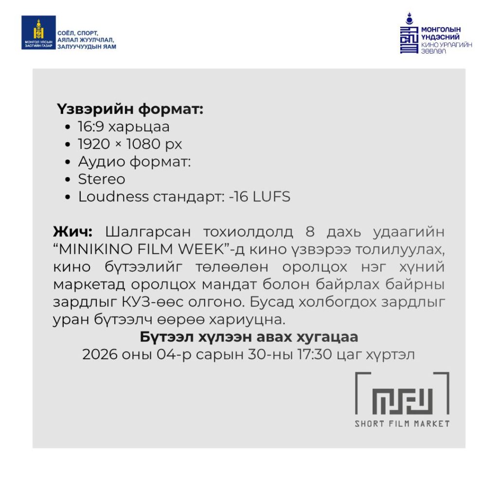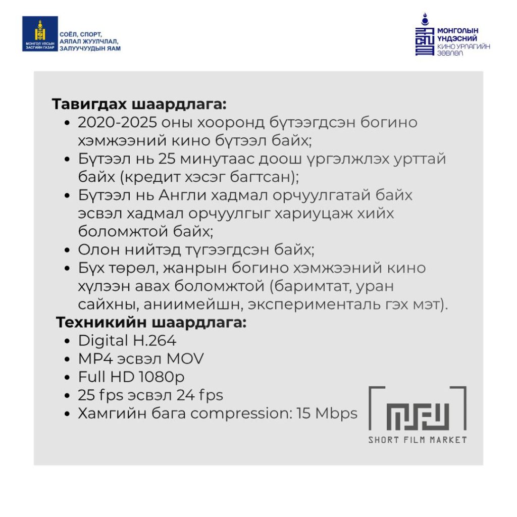 - 2020-2025 оны хооронд бүтээгдсэн богино хэмжээний кино бүтээл байх;