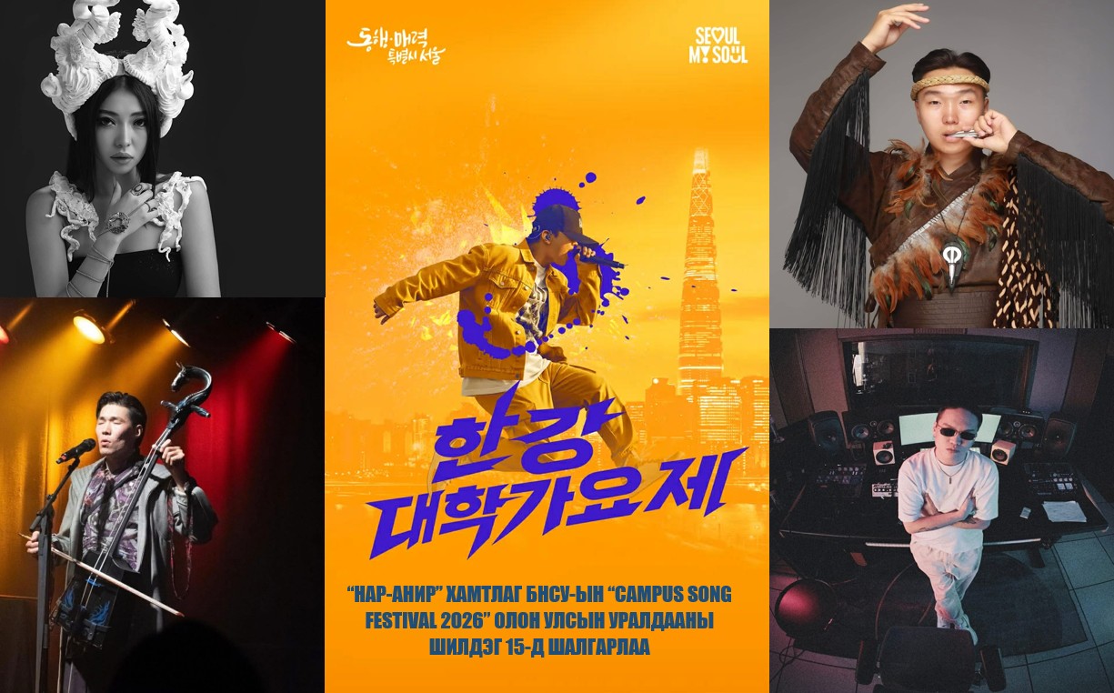 Өнгөрсөн 2025 онд БНСУ-ын “Physical Asia” шоу азийг байлдан дагуулсан билээ. Тэгвэл тус шоутай адил дуу, хөгжмийн “Hangang Campus Song Festival 2026” олон улсын уралдааныг БНСУ-ын Сөүл хотод “Korean Broadcasting System” болон “Jeju National University”-иас хамтран зохион байгуулж байгаа юм байна.