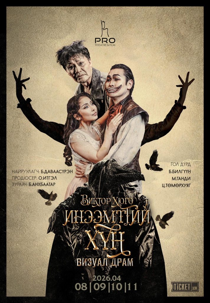 “Pro” театрынхан Францын алдарт зохиолч Виктор Хюгогийн “Инээмтгий хүн” романаас сэдэвлэсэн ижил нэрт визуал драмын жүжгээ дөрөвдүгээр сарын 8, 9, 10, 11-нд 19:00 цагаас РЦНК /Оросын шинжлэх ухаан, соёлын төв/-д дөрөвхөн удаа дахин тоглоно.