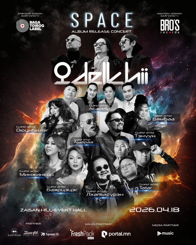 Монголын орчин үеийн хөгжмийн ертөнцөд өөрсдийн гэсэн өвөрмөц орон зайг хэдийн бүтээсэн “Delkhii” хамтлаг энэ сарын 18-нд “Zaisan Hill Event Hal”l-д “Space” буюу “Сансар” нэртэй цоо шинэ цомгийнхоо тоглолтыг хийх гэж байна.