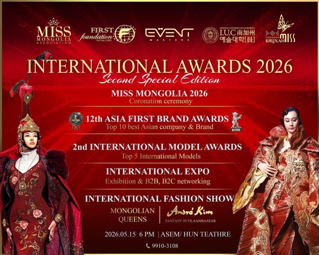 “International awards 2026” тавдугаар сарын 15-нд “Хүн” театрт болохоор товлогдоод буйг зохион байгуулагчид нь өчигдөр /2026.04.16/ мэдэгдлээ.