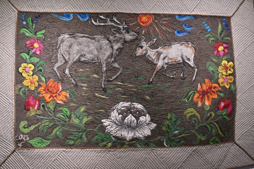 Мэргэжлийн боловсрол, ур чадвар олгох сургуулийн гар урлалын мэргэжлийн багш О.Загдцэнд ярихдаа, “Бид хонины ноосоор эсгий ширмэл, олбог зэрэг ахуйн хэрэглээний бүтээгдэхүүнийг хийдэг байсан бол энэ удаад уг материалыг илүү бүтээлч, уран сайхны чиглэлд ашиглан абстракт шийдэл бүхий, монгол ахуйг илэрхийлсэн бүтээлийг туурвихыг зорьсон” хэмээн тодотгож байлаа.