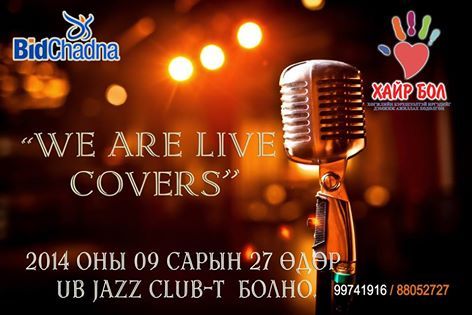 “Бид чадна эм эн нэгдэл, “Хайр бол” ТББ-ууд хамтран хөгжлийн бэрхшээлтэй иргэдийн дунд “We are live covers” дууны тэмцээнийг Монголд анх удаа зохион байгуулж байна. Шалгаруулалт хоёр шаттай бөгөөд нэгдүгээр шатнаас 18 хүн үлдэж, дараагийн шалгаруулалтад оролцох болоод байгаа юм. Харин шалгаруулалтын хоёрдугаар шат өнөөдөр 12:00 цагаас “UB Jazz Club”-д болох гэж байна.