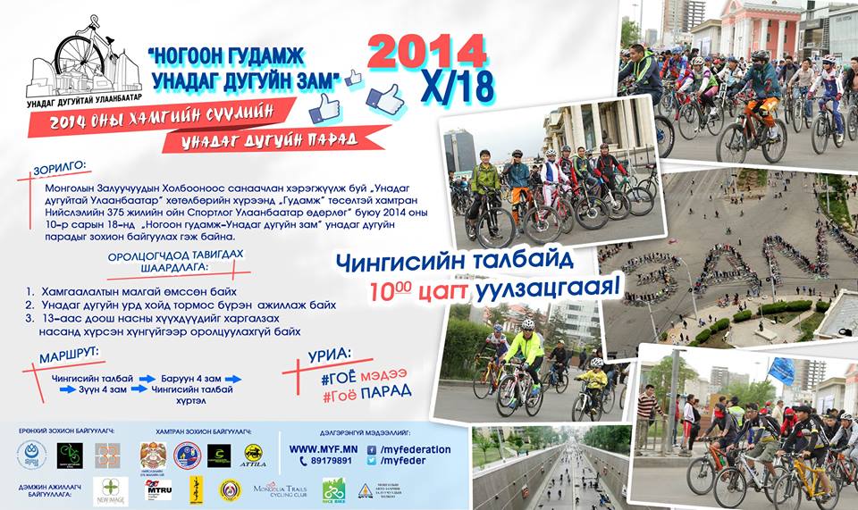 Энэхүү өдөрлөгт Монголын Залуучуудын Холбоо хамтран зохион байгуулагчаар оролцож байгаа бөгөөд Спирт үү, спорт уу аяныхаа хүрээнд 1000 гаруй хүний оролцоотой унадаг дугуйн парадыг МЗХ-ны дэргэдэх Залуу дугуйчин клуб зохион байгуулах аж.