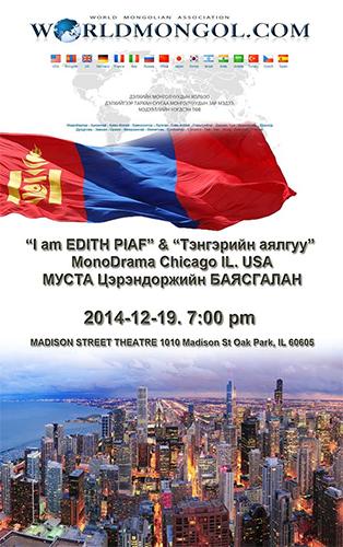 Монголд анх удаа нэг хүний драмын жүжгийн төрлөөр уран бүтээлээ хийж үзэгчдэд хүргэсэн авьяаслаг жүжигчин хэд хоногийн өмн АНУ-ыг зорьжээ. Тэрбээр энэ сарын 19 буюу Эдип Пиафын төрсөн өдрөөр Чикаго хотын “Мэдисон Стрийт” театрт “Би Эдип Пиаф байна” жүжгээ тоглох юм байна.