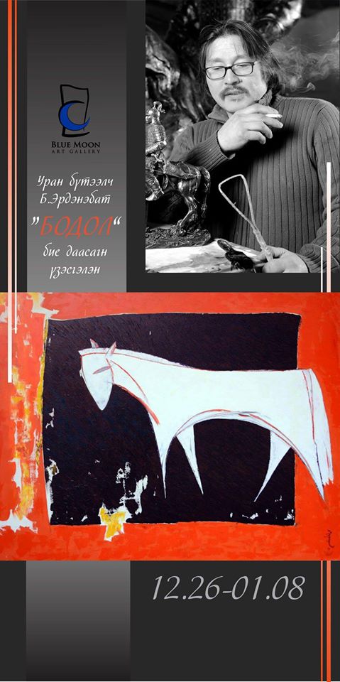 “Blue Moon” арт галерейн Аялагч Зураачдын Клубын тэргүүн, уран бүтээлч, судлаач Б.Эрдэнэбатын “БОДОЛ” уран бүтээлийн бие даасан үзэсгэлэн 2014 оны 12 сарын 26-01 сарын 08-ны хооронд Blue Moon арт галерейн үзэсгэлэнгийн танхимд дэлгэгдэх гэж байна.