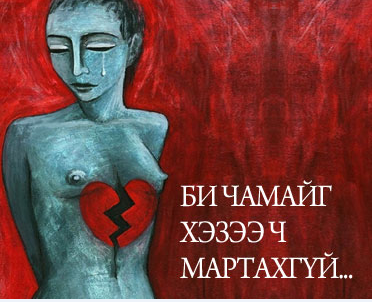 Намайг хамгийн ихээр хайрлаж суугаа ээжийгээ хvртэл гомдоосон. Тэднийгээ би даанч нэг сонсдоггvйсэн. Сэтгэл зvрхний минь эзэн чи л байсан хэрэг. Тэгэхэд ухаарсан бол би алдаагаа засахгvй юмаа гэхэд єєрийгєє улам бvр талхилуулж, урт удаан хугацааг алдахгvй байсан байх. Гэхдээ ойлгох цаг минь тэр vед болоогvй байсан юм байлгvй дээ.