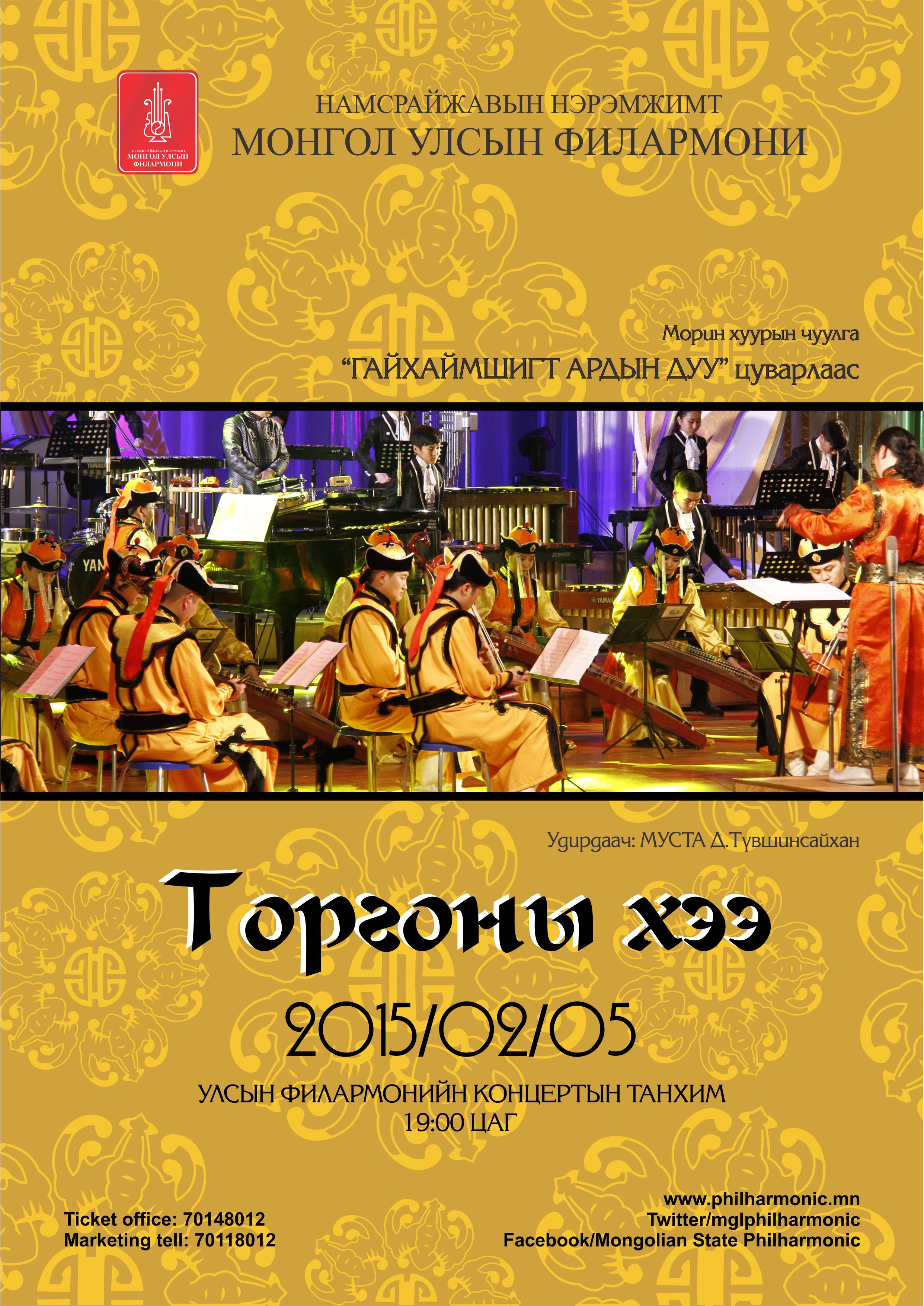 Монгол улсын морин хуурын чуулгын “Торгоны хээ” тоглолтын билет эрэлт ихтэй байна