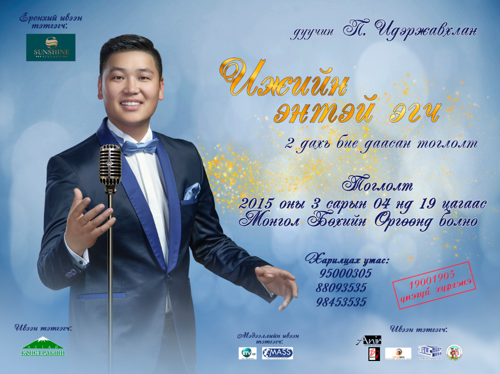 Дуучин П.Идэржавхлан “Ижий энтэй эгч” хэмээх эрхэм сайхан дуугаараа нэрлэсэн уран бүтээлийн хоёр дахь тоглолтоо гуравдугаар сарын 4-нд 19:00 цагаас эрийн хийморь мандаасан Монгол бөхийн өргөөнөө хийж уянгалаг сайхан дуу хуураараа үзэгч түмэнтэйгээ учран золгох гэж байгаа билээ.