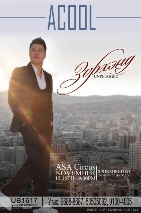 Хамгийн богино хугацаанд залуусын дунд хамгийн ихээр хайрлагдаж, дуулсан дуу болгон нь хит болдог залуу дуучин А Cool энэ сарын 15,16-нд АСА циркт бие даасан “Зүрхэнд” тоглолтоо хийх гэж байна. Түүний шинэ тоглолт “Зөөлөн хайр” цомгийн баяртай давхцаж байгаагаараа онцлогтой.