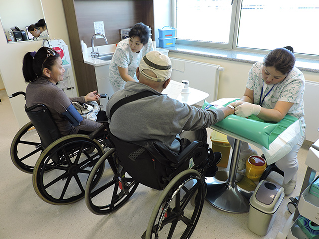 Тус аяны эхний үйл ажиллагаа 05-р сарын 01-нд буюу өнгөрөгч Баасан гарагт “Монголын Хөгжлийн Бэрхшээлтэй Иргэдийн Хөдөлмөр Сургалтын Үндэсний Төв” болон Хан-Уул дүүргийн Нийгмийн Хөгжлийн Албатай хамтран ажиллаж үр өгөөжтэй болж өнгөрлөө. Хөгжлийн бэрхшээлтэй тэргэнцэртэй 40 гаруй иргэдэд “Интермед” эмнэлэгийн мэдрэл, зүрх судас, уушиг, бөөр, мэс засал, сэргээн засахын нарийн мэргэжлийн эмч нар үзлэг хийж шаардлагатай цус, шээс, нүдны шинжилгээнүүдийг хийж мөн цооролтын шархны цэгцэлгээ, боолт зэрэг эмчилгээ, оношилгоо хийгдлээ.