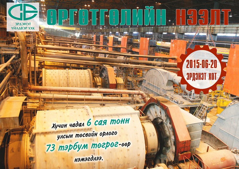 “Эрдэнэт” үйлдвэрийнхэн 6-р сарын 20-нд буюу маргааш, томоохон бүтээн байгуулалтаа хүлээн авна. Энэ үйл ажиллагаанд Монгол улсын Ерөнхийлөгч Ц.Элбэгдорж оролцож, уул уурхайн ууган үйлдвэрийн хамт олонд баяр хүргэх юм байна. “Эрдэнэт” үйлдвэрийн өргөтгөл ашиглалтанд орсноор тус үйлдвэр жилд 32 сая тонн хүдэр боловсруулж, төсвийн орлогыг 73 тэрбум төгрөгөөр нэмэгдүүлэх эдийн засгийн өндөр ач холбогдолтой гэж тус үйлдвэрийн Хэвлэл мэдээлэл, олон нийттэй харилцах албанаас мэдээллээ.
