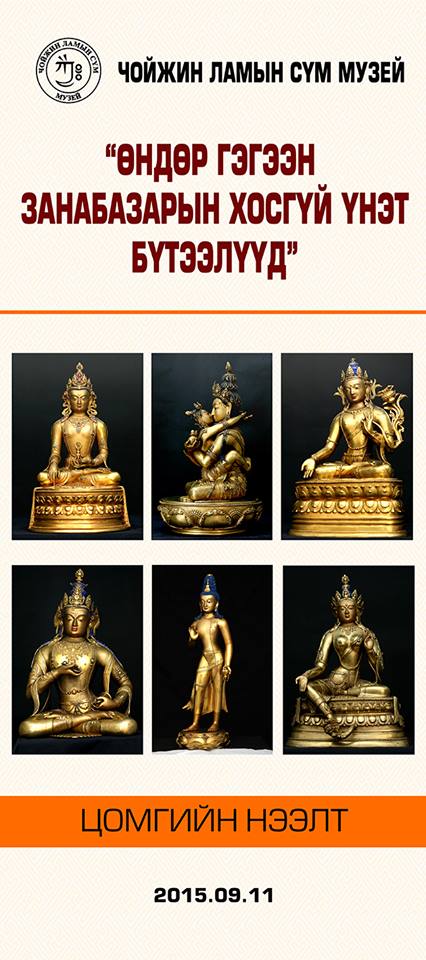Монголын их соён гийгүүлэгч, төр, шашин, соёл урлагийн нэрт зүтгэлтэн Анхдугаар Богд Жавзандамба Лувсандамбийжанцан сайн цогтын түмэн өлзий гийсний 380 жилийн ойд зориулан “Өндөр гэгээн Занабазарын хосгүй үнэт бүтээлүүд” сэдэвт үзэсгэлэн, түүний бүтээлүүдийн дээжээс бүрдсэн цомгийн нээлтийг 2015 оны 09 сарын 11-ны өдрийн 11:30 цагт зохион байгуулах гэж байна.