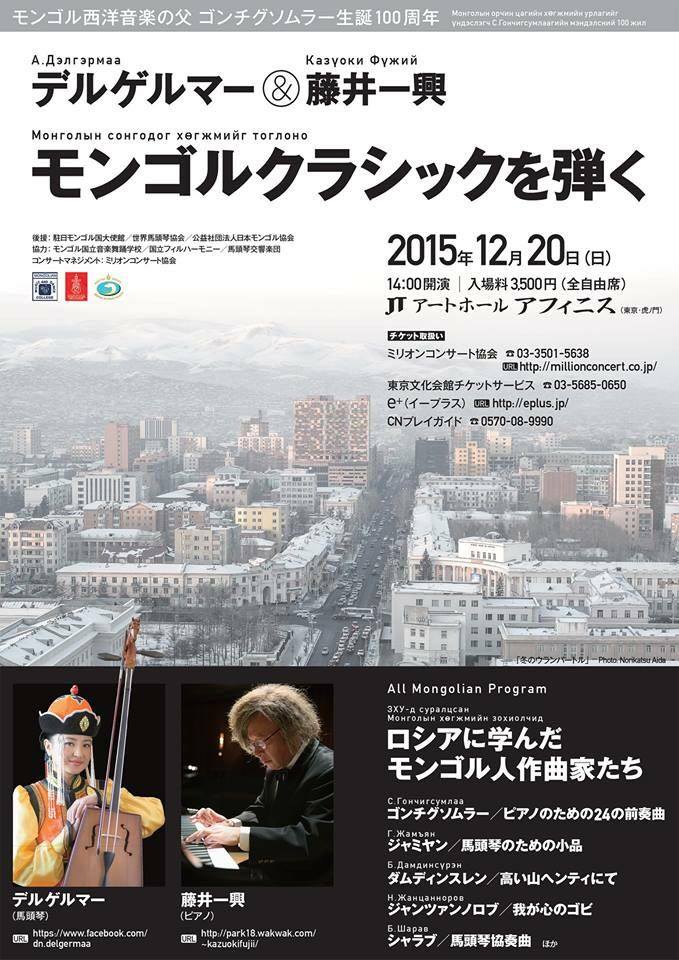 Тэгвэл монгол улсын морин хуурын чуулгын морин хуурч А. Дэлгэрмаа Японы нэрт төгөлдөр хуурч Казуоки Фүжитэй хамтран алдарт С.Гончигсумлаа, Б. Дамдинсүрэн, Г. Жамьян, Н. Жанцанноров, Б.Шарав нарын “24 прелюд” цуврал бүтээлийг бүрэн эхээр нь Японы тайзнаа тоглох гэж байна.