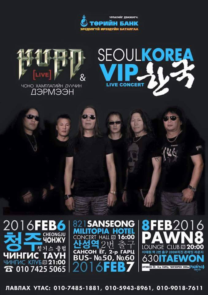 Тэгвэл тус хамтлагийн залуус гадаадад ажиллаж амьдарч байгаа тэр дундаа Солонгосд байгаа Монголчууддаа зориулан тоглолтоо хийхээр боллоо. Тоглолтонд мөн "Чоно" хамтлагийн дуучин Дэрмээ оролцоно гэдгийг мэдэгдсэн юм. Тоглолт ирэх хоёрдугаар сарын 6, 7, 8-ны өдрүүдэд буюу сар шинийн баярын өдрүүдэд болох юм байна. Эх орон элгэн саднаасаа алс холын нутагт ажиллаж амьдарч байгаа элэг нэгтэн та бүхнийг Монгол түмнийхээ хүндлэлийг хүлээсэн Хурд хамтлагийн тоглолтыг үзэж эх орон, элгэн саднаа санан дурсаж нэгэн үдшийг гайхалтай өнгөрүүлэхийг урьж байна.