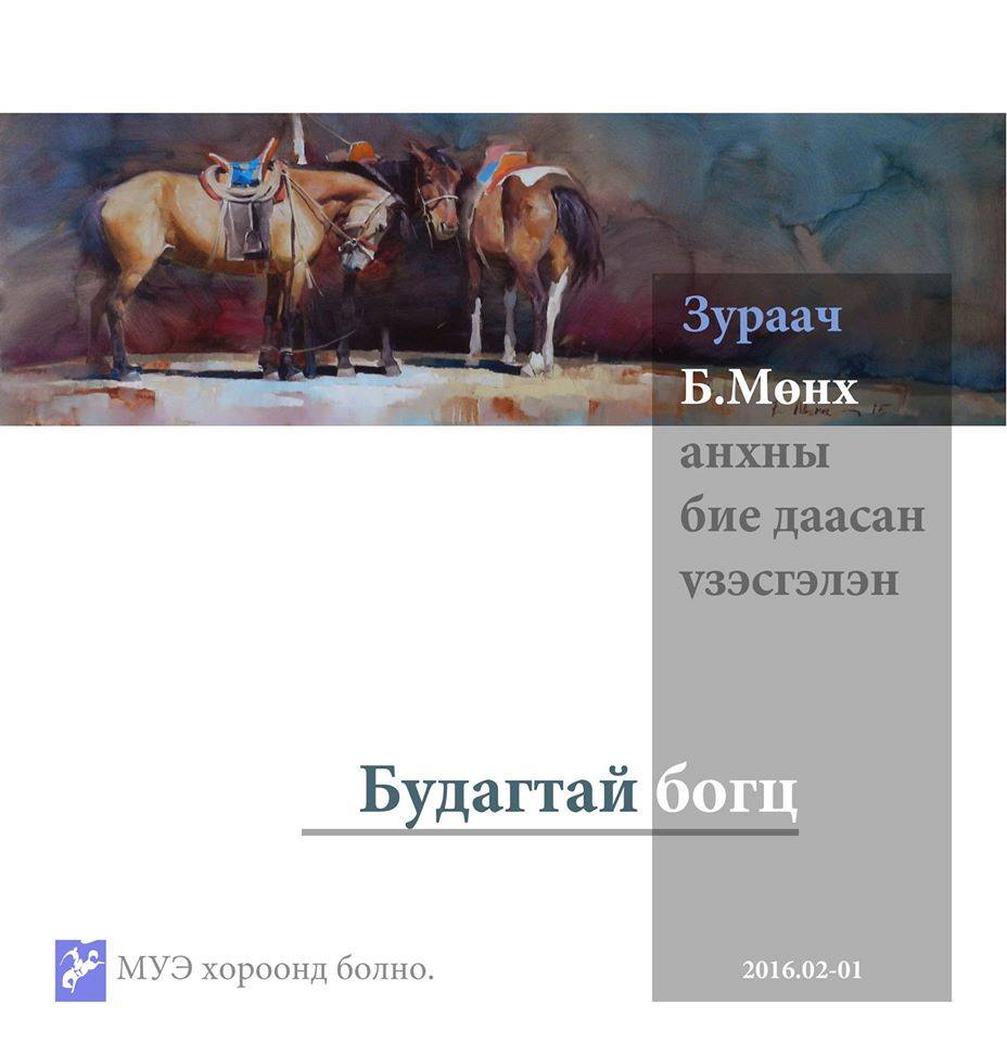 Share Facebook Twitter LinkedIn Pinterest Имэйл Уран зураг, урлагт хайртай хэн бүхэнд дуулгахад та бүхний мэлмийг мялаах нэгэн үзэсгэлэн дэлгэгдэж байна. Зураач Б.Мөнх "Будагтай богц" уран зургийн үзэсгэлэн МУЭ-д өчигдөр нээлтээ хийлээ. Та бүхнийг хүрэлцэн ирэхийг урьж байна. www.Urlag.mn