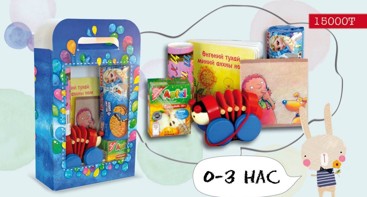 Хүүхэд бүрийн нүдэнд баярын оч гялалзаж, инээд хөөрөөр хөглөгдөх мөч урин цагийн дулаан салхитай хамт айсуй. “Хүүхдийн хөгжил номын хуудаснаас” уриатай Монсудар хэвлэлийн газрын Жангар хүүхдийн номын редакцийн хамт олон 15000-20000 төгрөгийн хооронд хүүхдийн насны онцлогт тохирсон амттантай, тоглоомтой, номтой бэлгийг гаргаж байна. 0-3, 4-7, 8-аас дээш гэсэн 3 насны ангилал тус бүр 15000, 20000 төгрөгийн үнийн сонголттой байгаа бөгөөд 0-3 насны ангиллын бэлгэнд Жангар редакцийн ном, үсэг тоотой өндөр хэмжигч, модон тоглоом, ил захидал, амттан, ундаа багтаж байгаа юм.