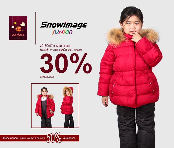 “Snow Image” брэндийн 2017 оны шинэ загвар бүхий куртик, комбинзонууд нь био сөдөн материалтай тул дулаахан, хөнгөн, цэвэрлэхэд хялбар гэдгээрээ давуу юм. SnowImage брэнд нь өмсөхөд тав тухтайгаас гадна өнгөний хурц шийдэл, давтагдахгүй загвартай гэдгээрээ манай худалдан авагчид сайн мэдэх болсон.