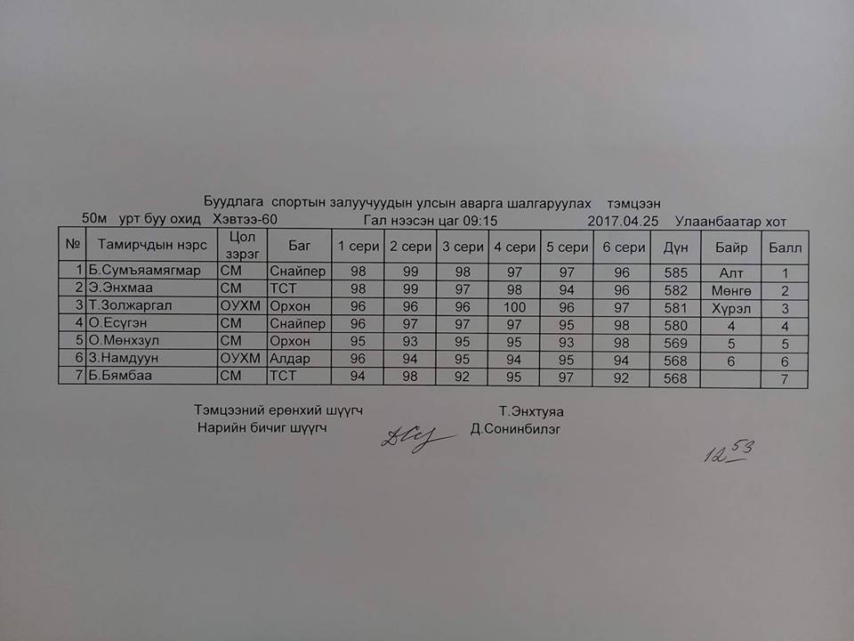 Өнөөдөр Хөвгүүдийн ХГ-6, Охдын ХГ-4 мөн урт бууны төрөлд 3×20 дасгалууд явагдаж байна.