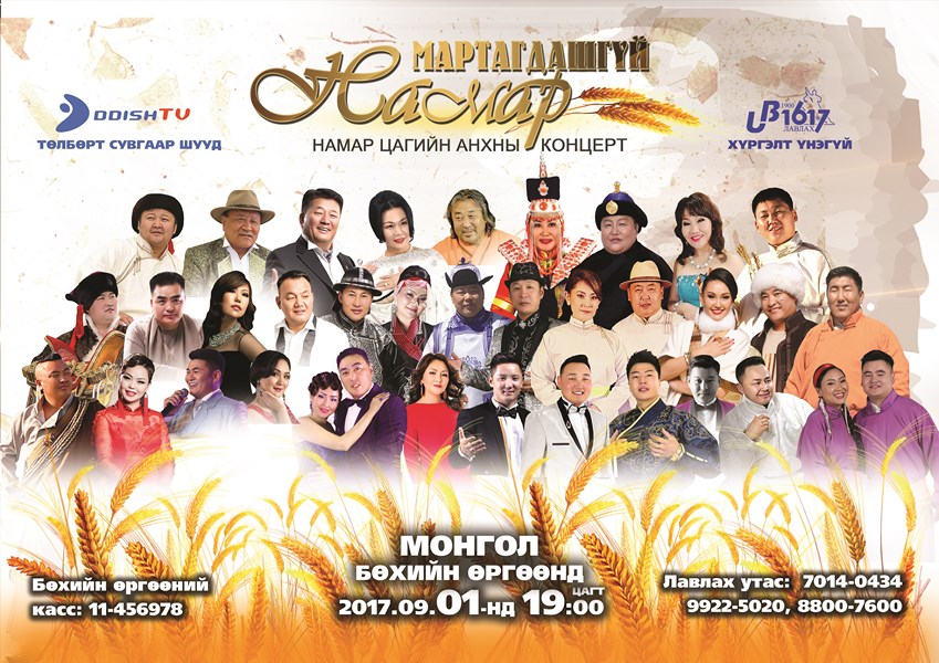 Шүүдрийн дусал, нарны цацраг, шаргал навчсаар гоёсон алтан намар айсуй… Байгалийн сайхан үзэмж, сэтгэлийн чанад дахь нууцхан хүсэл, ирээдүйд биелэх сайхан зөнг дуу хууранд шингээж, дуулим хорвоог уяртал дуулдаг монгол түмэндээ "Мартагдашгүй намар" нийтийн дууны шилдгүүдийн нэгдсэн тоглолтыг зориулж байна.