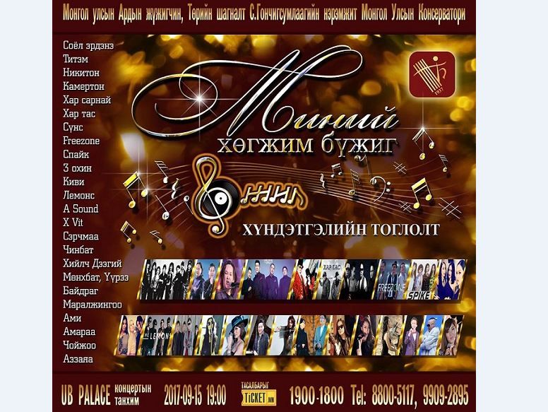 Монгол Улсын Консерватори болоод буй Хөгжим бүжгийн коллеж байгуулагдсаны 80 жилийн ойн хүрээнд тус сургуулийг төгсөгч рок, попын уран бүтээлчдийн нэгдсэн “Миний хөгжим бүжиг” тоглолт энэ сарын 15-ны 19 цагт UB palace-ийн концертын их танхимд болох юм. Энэ тоглолтыг санаачилж хэрэгжүүлэгч тус сургуулийн үлээвэр хөгжмийн тэнхмийн багш М.Мөнхсайханаас тоглолтын талаар тодруулсан юм.